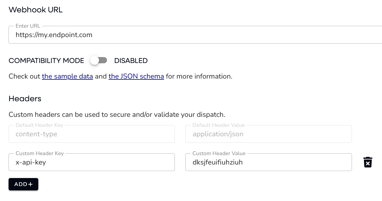 The header parameters are included in the request header. They can be used, for example, to add an API key, which is strongly recommended in production to prevent malicious data injection.