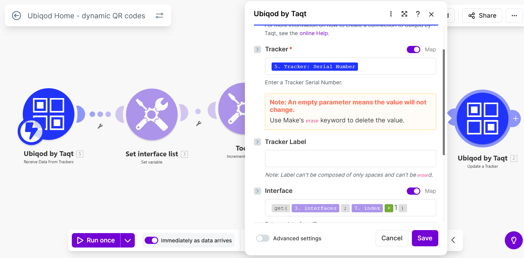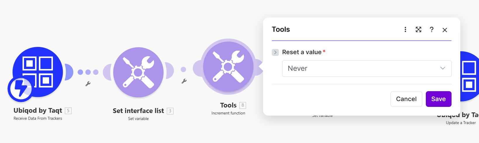Using the Ubiqod API and the Ubiqod apps for Zapier, Make, or Power Automate, you can go further by dynamically changing the content of the page linked to the QR code based on the context, for example depending on the time of day or the result of a previous action.