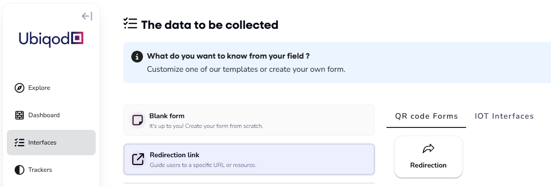 To redirect users to your own interface, create a Redirection type interface: