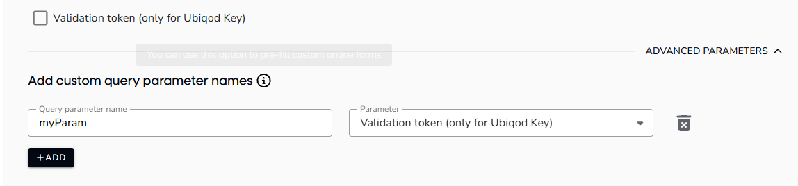 Then enter the URL of your interface, and check the Validation token box: