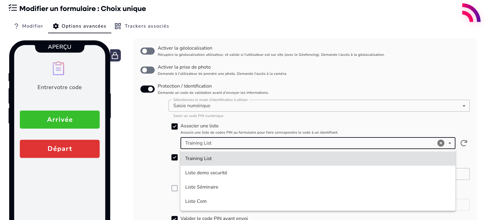 Une fois votre liste créée, vous devez l'associer à l'interface utilisée (par exemple le formulaire pour le QR code).