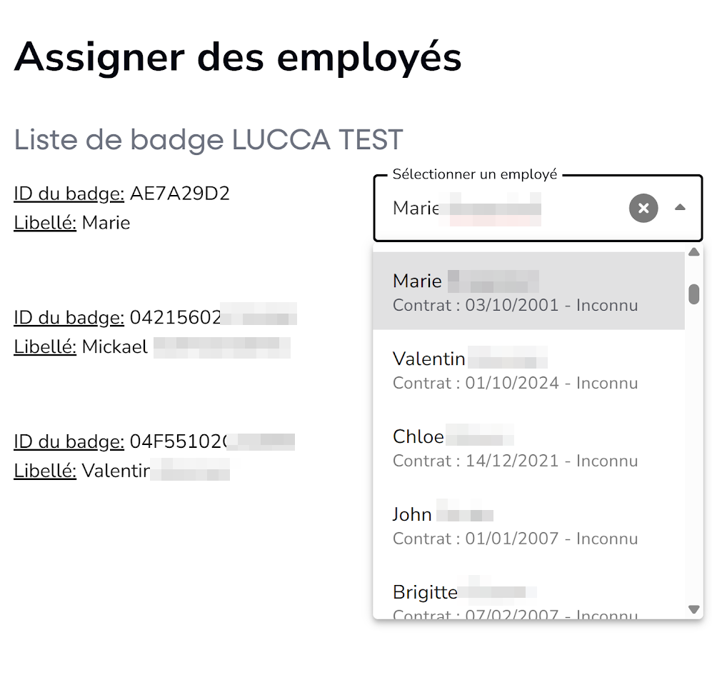 Et associez les membres de la liste aux collaborateurs Lucca à l'aide la liste déroulante :