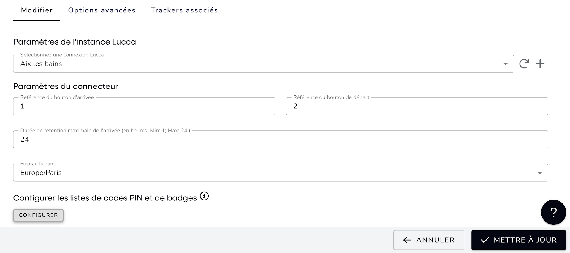 Pour effectuer la correspondance entre un membre de votre liste et son identité dans Lucca, allez dans les paramères du connecteur Lucca, bouton CONFIGURER :
