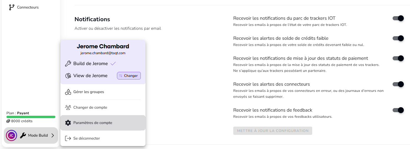 Vous pouvez désactiver les alertes email en cas d'erreur sur les connecteurs dans vos paramètres de compte :